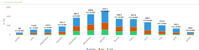 Cela permet de suivre l’évolution des coûts et d’identifier les périodes où certaines composantes deviennent plus impactantes (notamment en cas de dépassement de puissance souscrite).