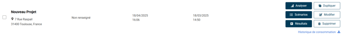 Une fois votre projet créé, vous pouvez lancer l'analyse afin d’examiner les données de consommation et les coûts associés.