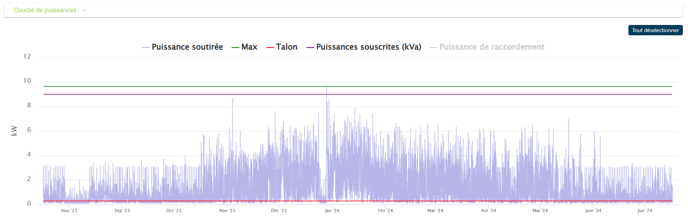 Ce graphique affiche la puissance soutirée (en kW) tout au long de la période d’analyse.