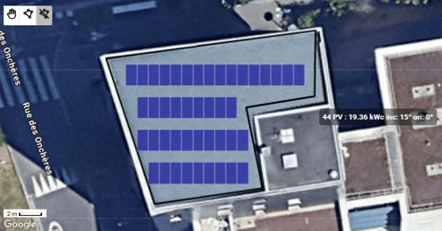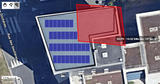 Une fois la zone dessinée, Optiwize Pro positionne automatiquement les panneaux PV selon les dimensions spécifiées.