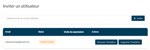 Tant que l’invitation n’a pas été acceptée, vous pouvez à tout moment la retirer depuis la liste des invitations, en cliquant sur Supprimer l’invitation en face de l’email concerné.