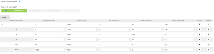 Une fois activé, configurez votre tarif proposé dans l'appel d'offre dans la case "Tarif de vente" en c€ / kWh, à la place de celui renseigné par défaut et correspondant aux dernières valeurs d'obligation d'achat.