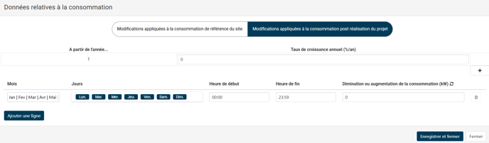 Le taux de croissance annuel correspond à l'évolution prévue de la consommation d'électricité du site au fil des années.