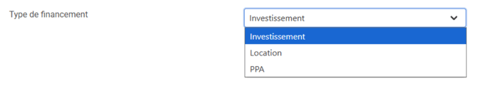 Dans ce mode de financement, aucune part d’investissement ou de location n’est à renseigner au niveau des compteurs.