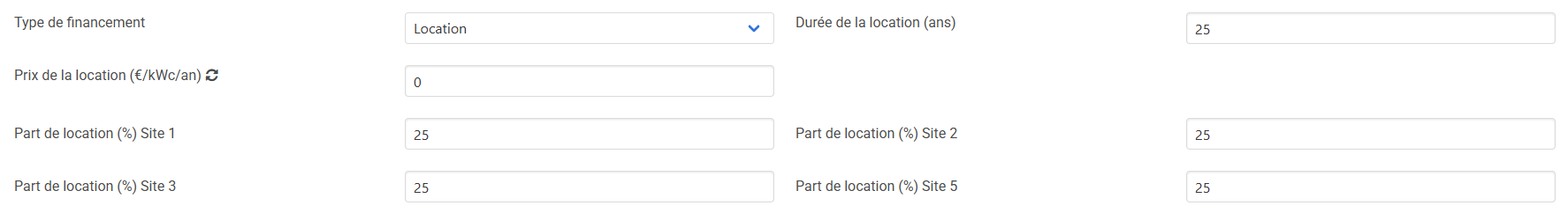 Comme pour l’investissement, dans un scénario ACC multiproducteur, il est nécessaire de renseigner la part de location associée à chaque compteur afin de répartir les coûts de manière cohérente entre les sites.